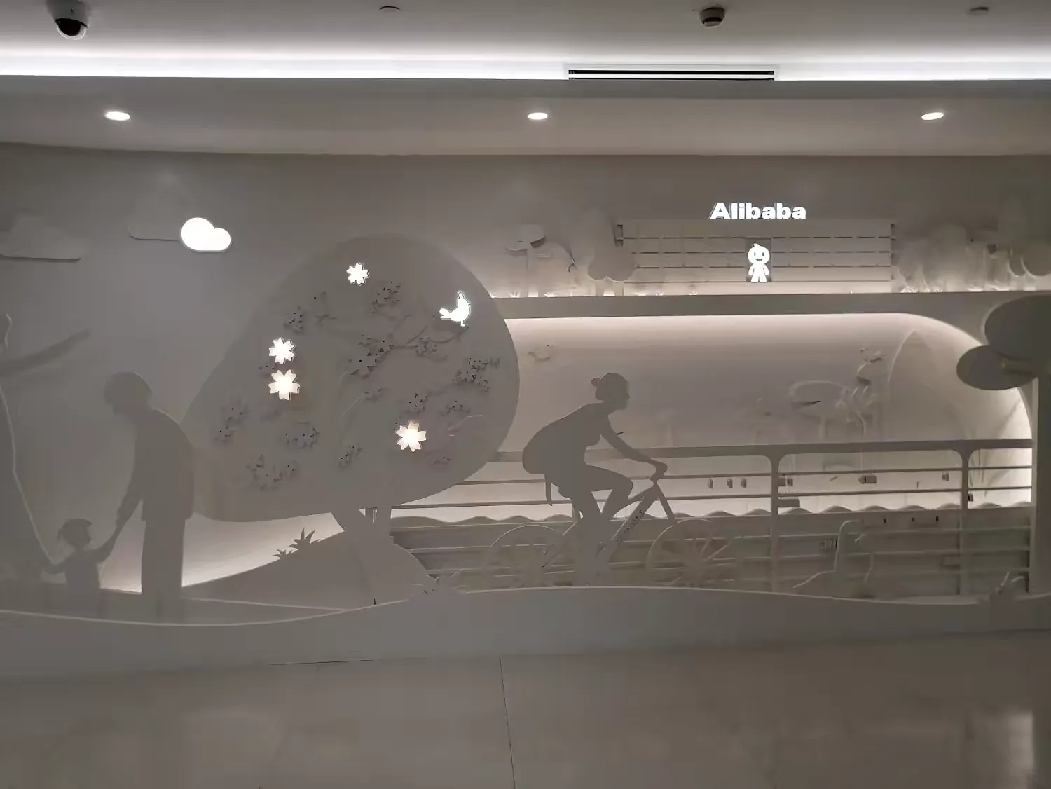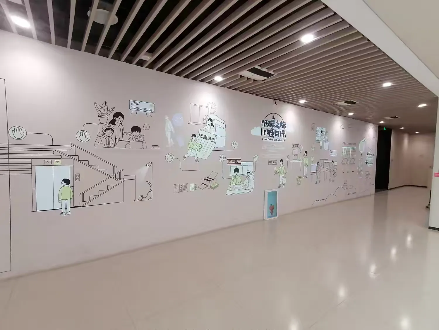 作为企业文化的重要载体,园区内的活动空间同样值得关注。从“阿里日”主题展示区到趣味十足的走廊壁画,每一处设计都在传递着企业的价值观与团队活力。